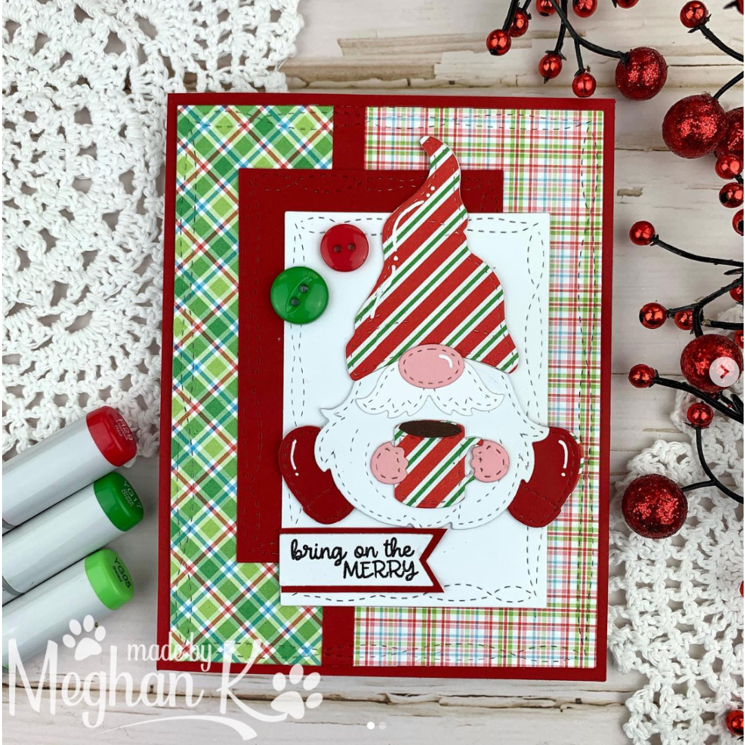 What a festive little gnomie! Meghan's sweet diecut gnome and fun holiday colors put me in a merry mood and ready for Christmas!